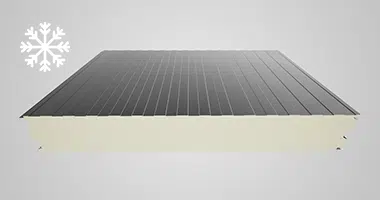 Topanel produces thermal insulation panels with support facings made of S220GD/S250GD steel sheet, with a minimum zinc coating of 200 g/sqm, stainless steel (inox), or composite material with fiberglass, adapted to the specific requirements of the project.